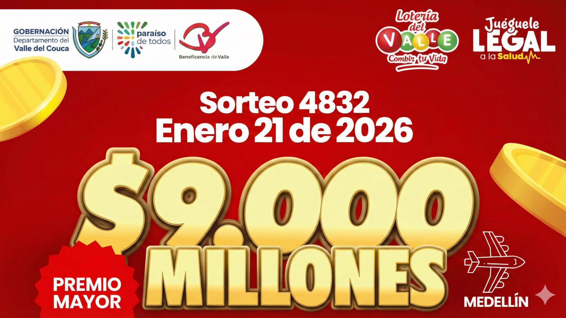 Resultado del sorteo 4832 de la Lotería del Valle dejó ganador de $9.000 millones